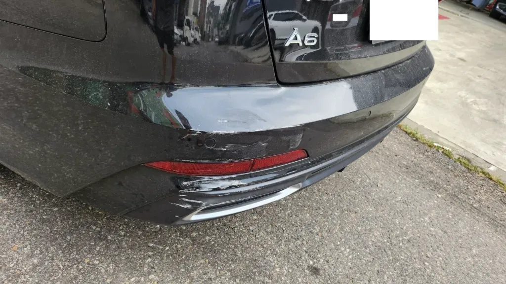 - 아우디 A6 리어 범퍼 도장면 손상. 흠집.