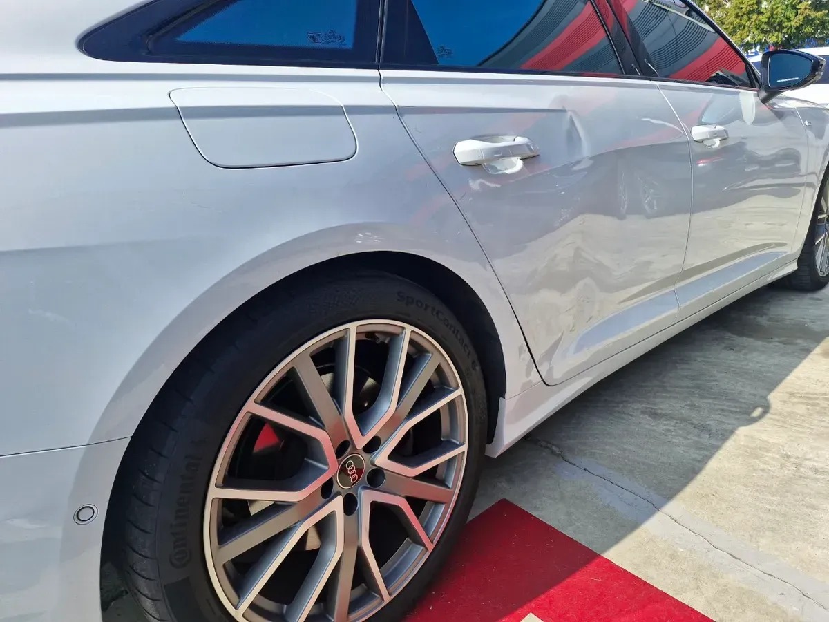 이번에는 아우디 A6 화이트 모델의 오른쪽 차체에 생긴 손상을 수리해드렸습니다. 도어, 펜더(휠하우스)에 생긴 손상이었습니다.