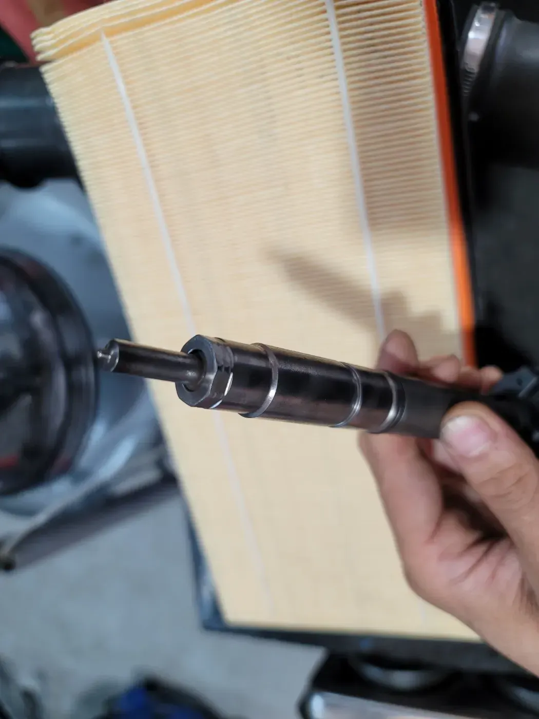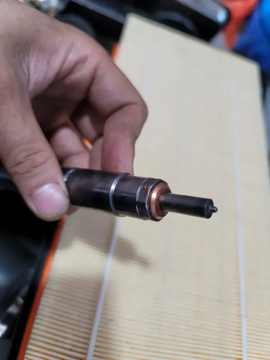 엔진에 고착된 1번 인젝터를 탈거한 후 외부를 깔끔하게 세척하고 새 인젝터씰과 함께 다시 잘 결합해드렸습니다.