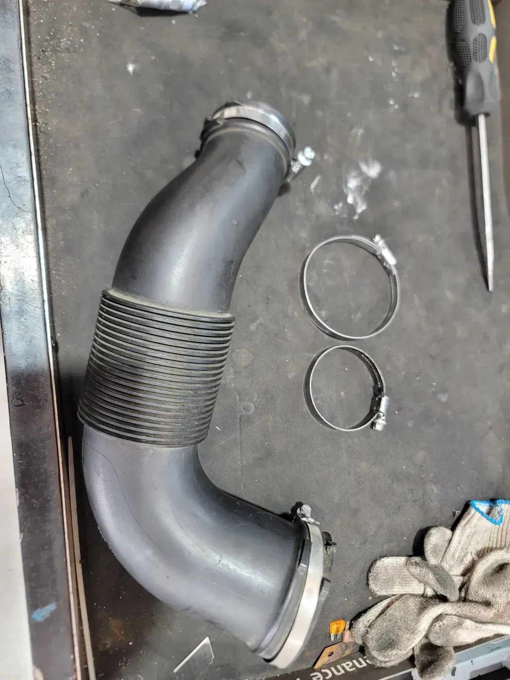 추가로 엔진 흡기 덕트(파이프)를 고정해주는 금속 클램프도 손상되어 함께 교체해드렸습니다.