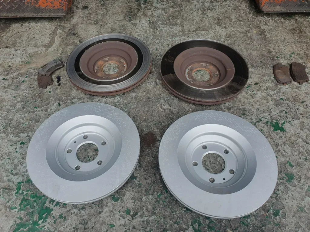 - 새 브레이크 디스크 및 패드 장착