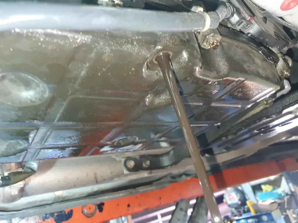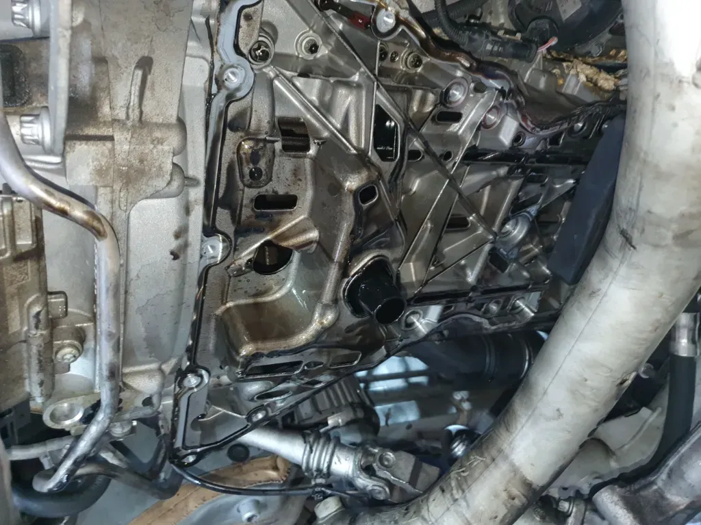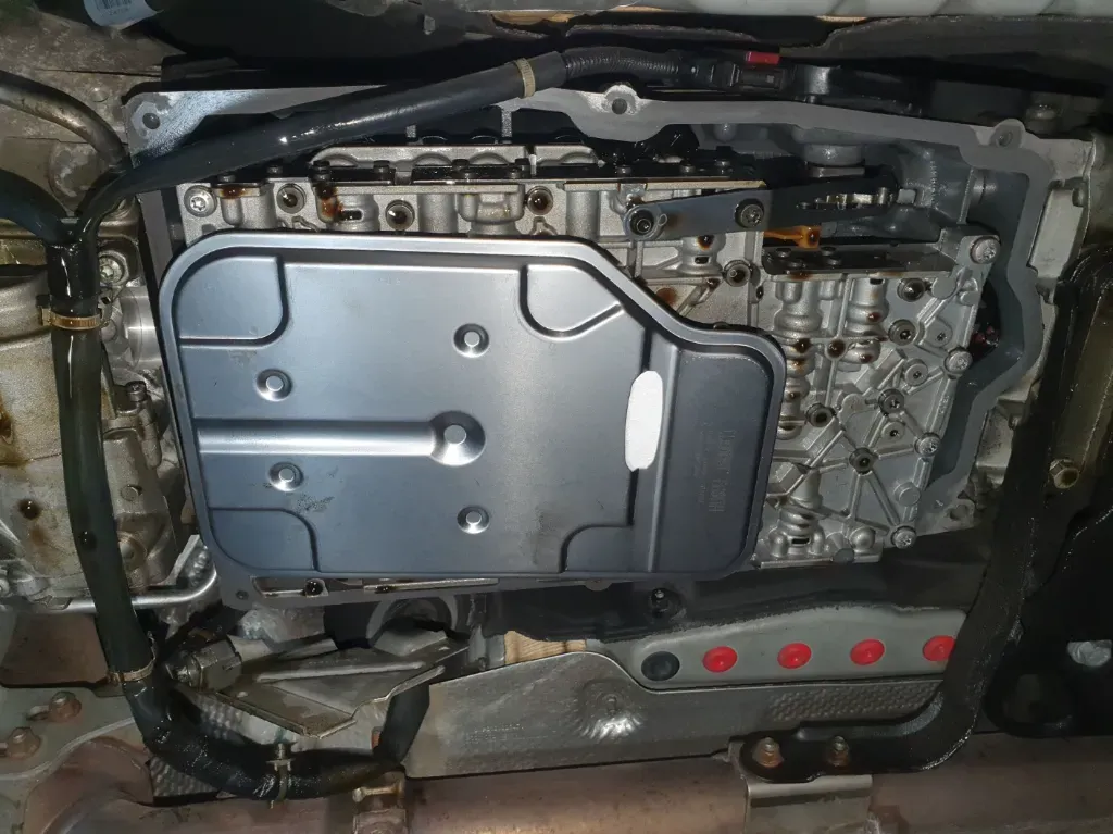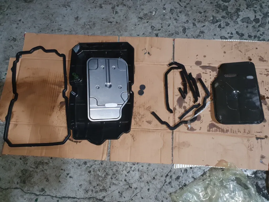 자동 변속기 오일(미션 오일)을 교체하는 작업은 정확한 오일 양을 맞춰주는 것이 중요합니다. 기존의 오염된 오일과 필터를 제거하고 새 오일과 새 필터로 마무리했습니다.