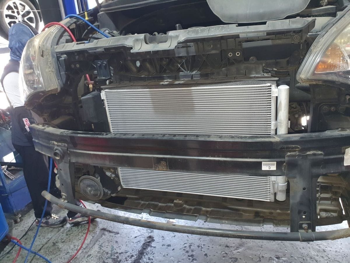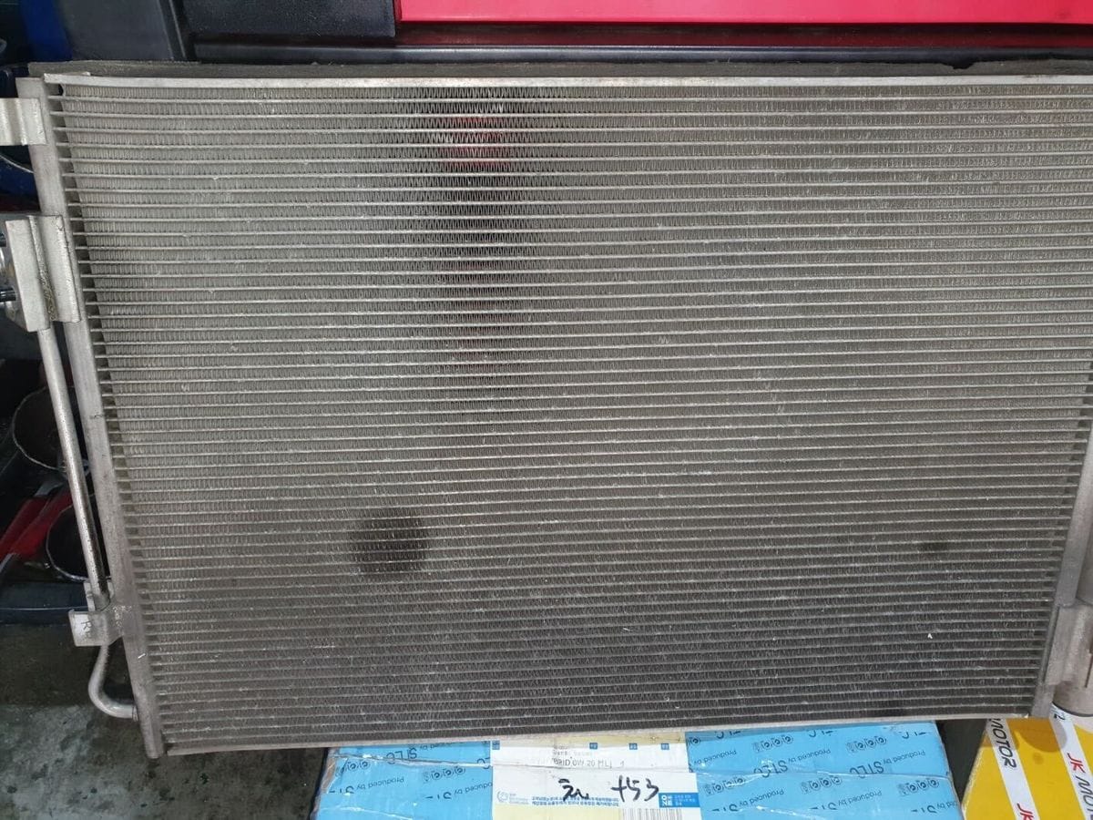 대구 범어동 자동차시대에서 기아 올뉴프라이드의 에어컨 고장을 수리해드렸습니다. 에어컨 가스가 누설되고 있었고, 누설되는 부위는 에어컨의 응축기(콘덴서) 였습니다.
