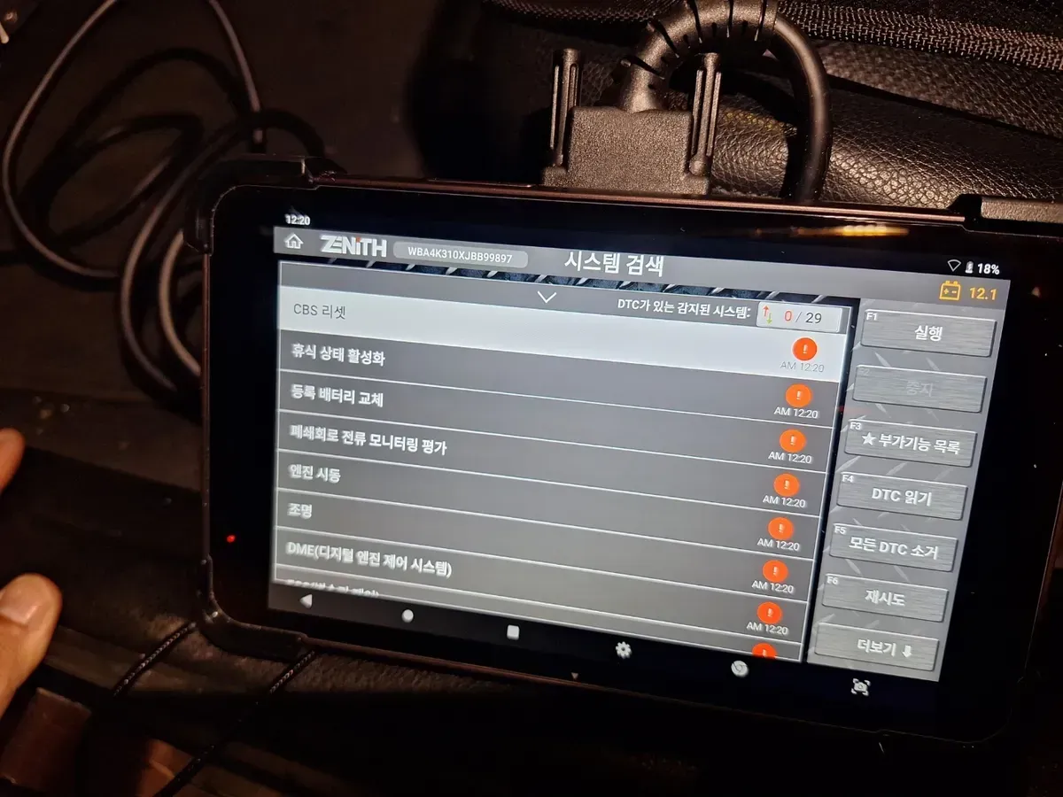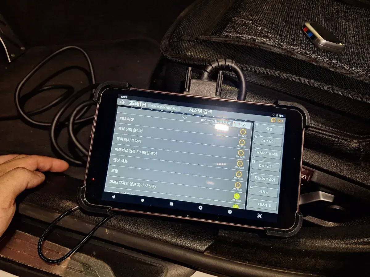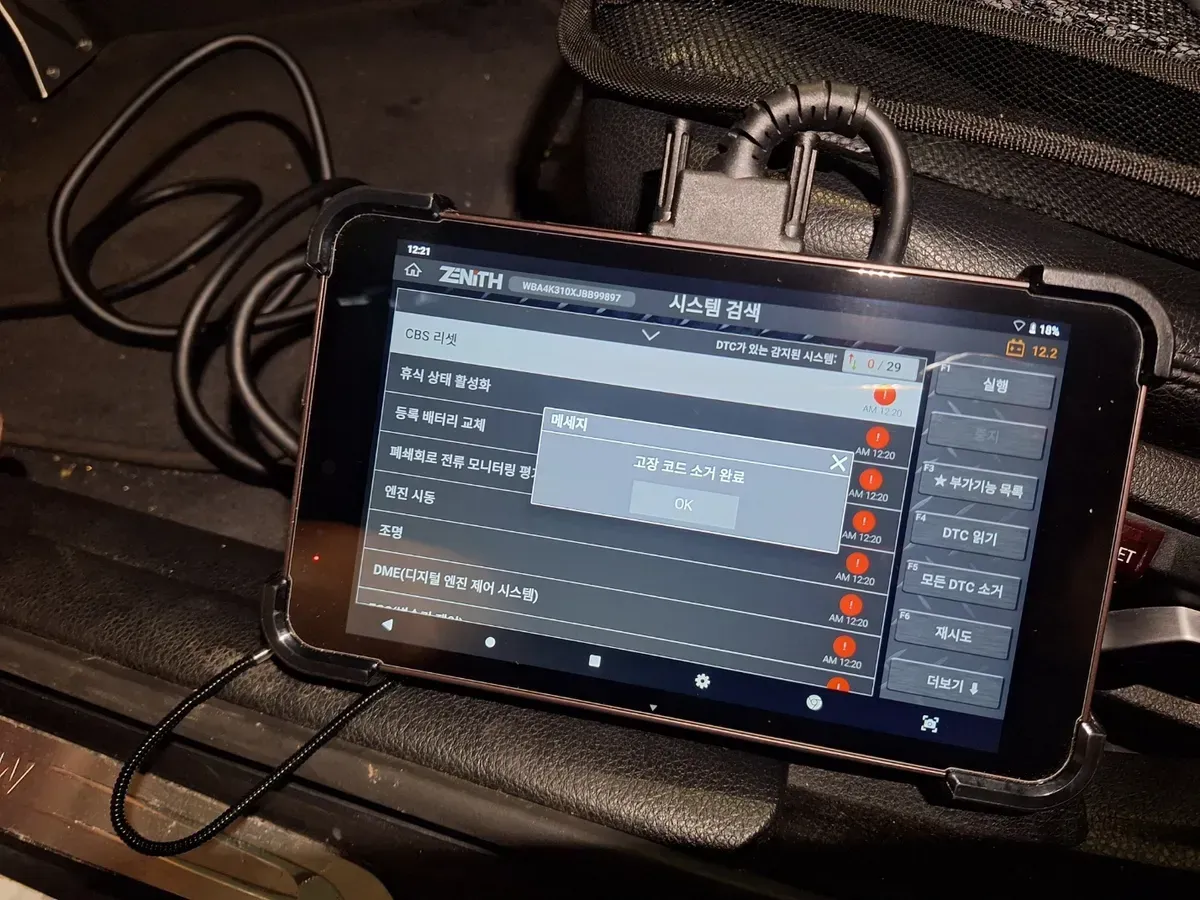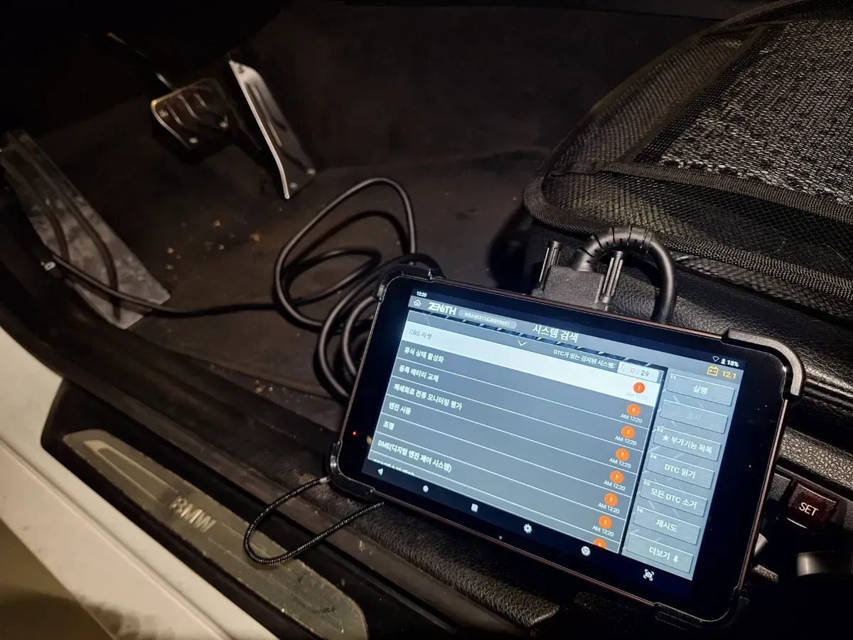 작업 후에는 진단기를 이용해 고장 코드 메모리를 정리했습니다.