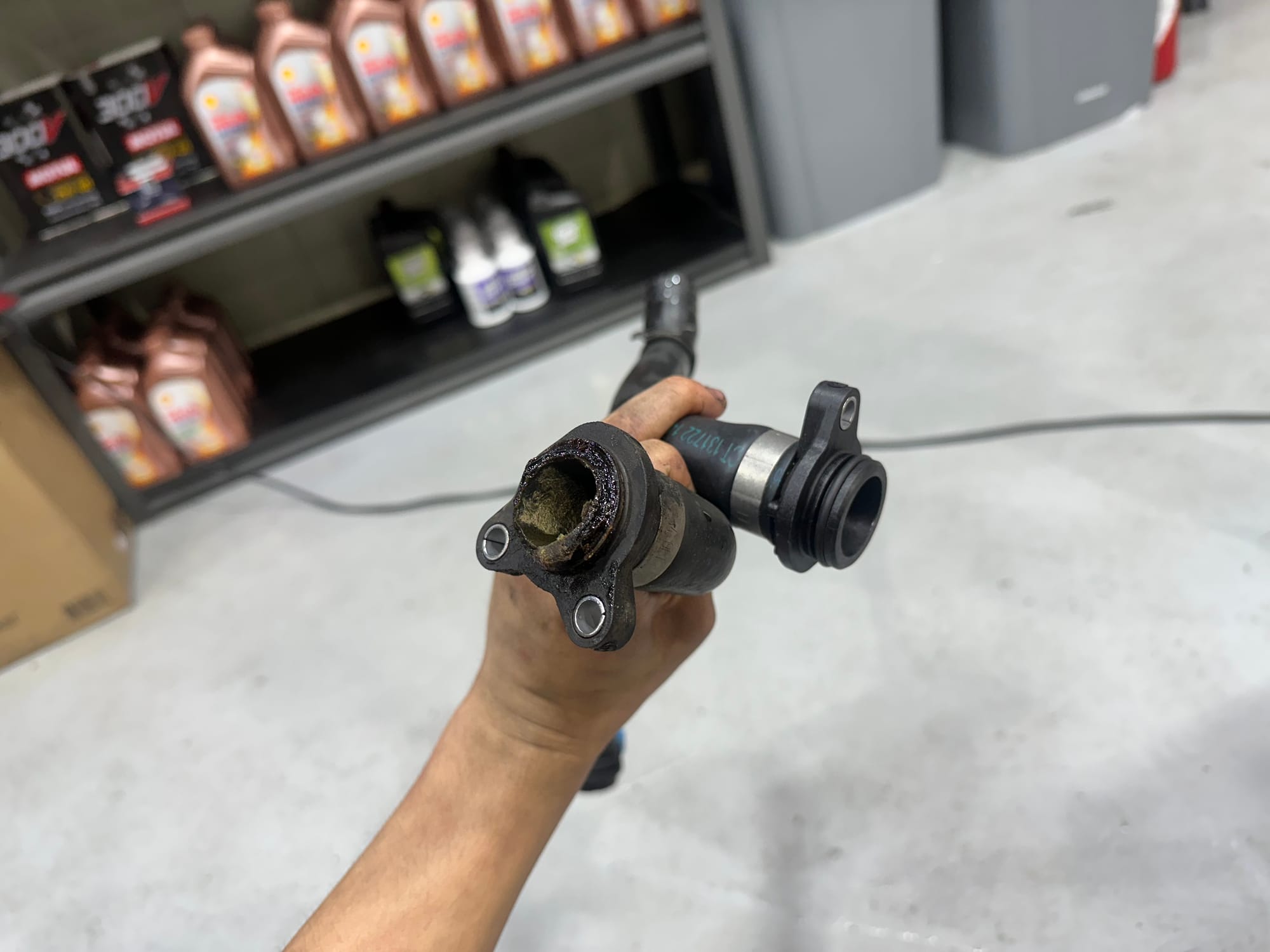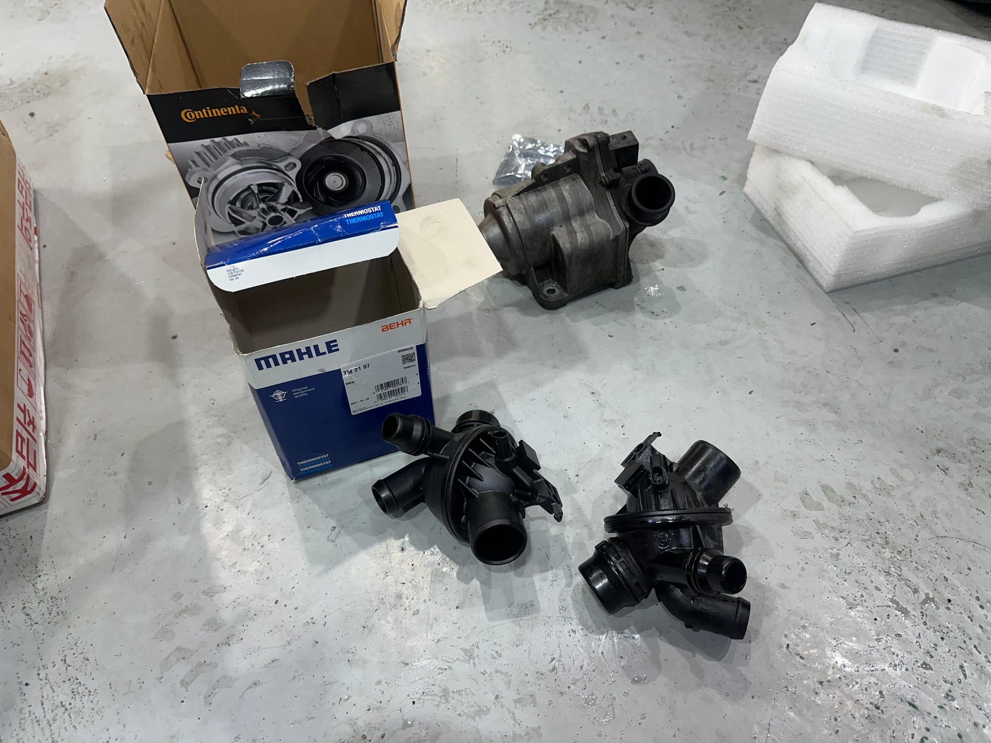 엔진 냉각수를 순환하는 워터 펌프에 문제가 생겼고, 워터 펌프를 정비하면서 관련 부품들 중 문제가 되는 부품들을 모두 함께 정비했습니다.