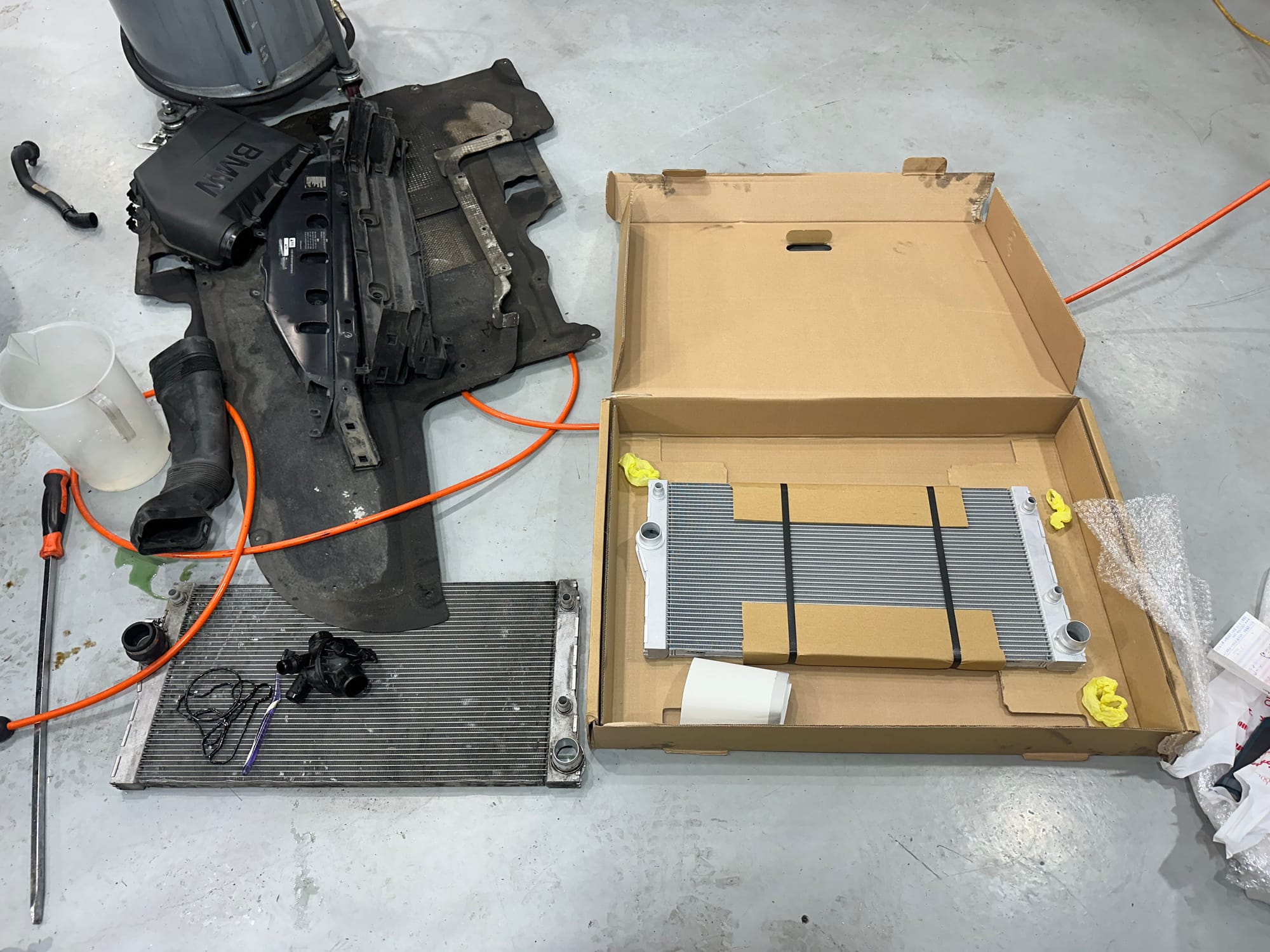 전동식 워터 펌프에 문제가 발생되었고, 라디에이터, 써모스탯, 냉각수 호스 등을 함께 교체하는 정비 작업을 진행했습니다. 아래 사진과 함께 보실 수 있습니다.