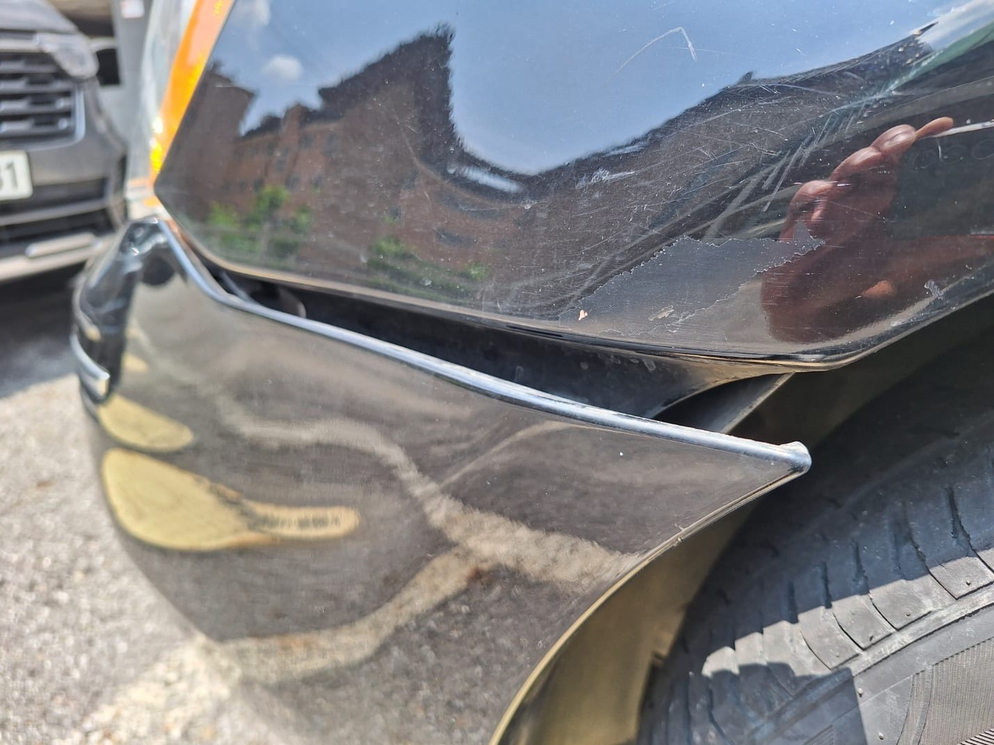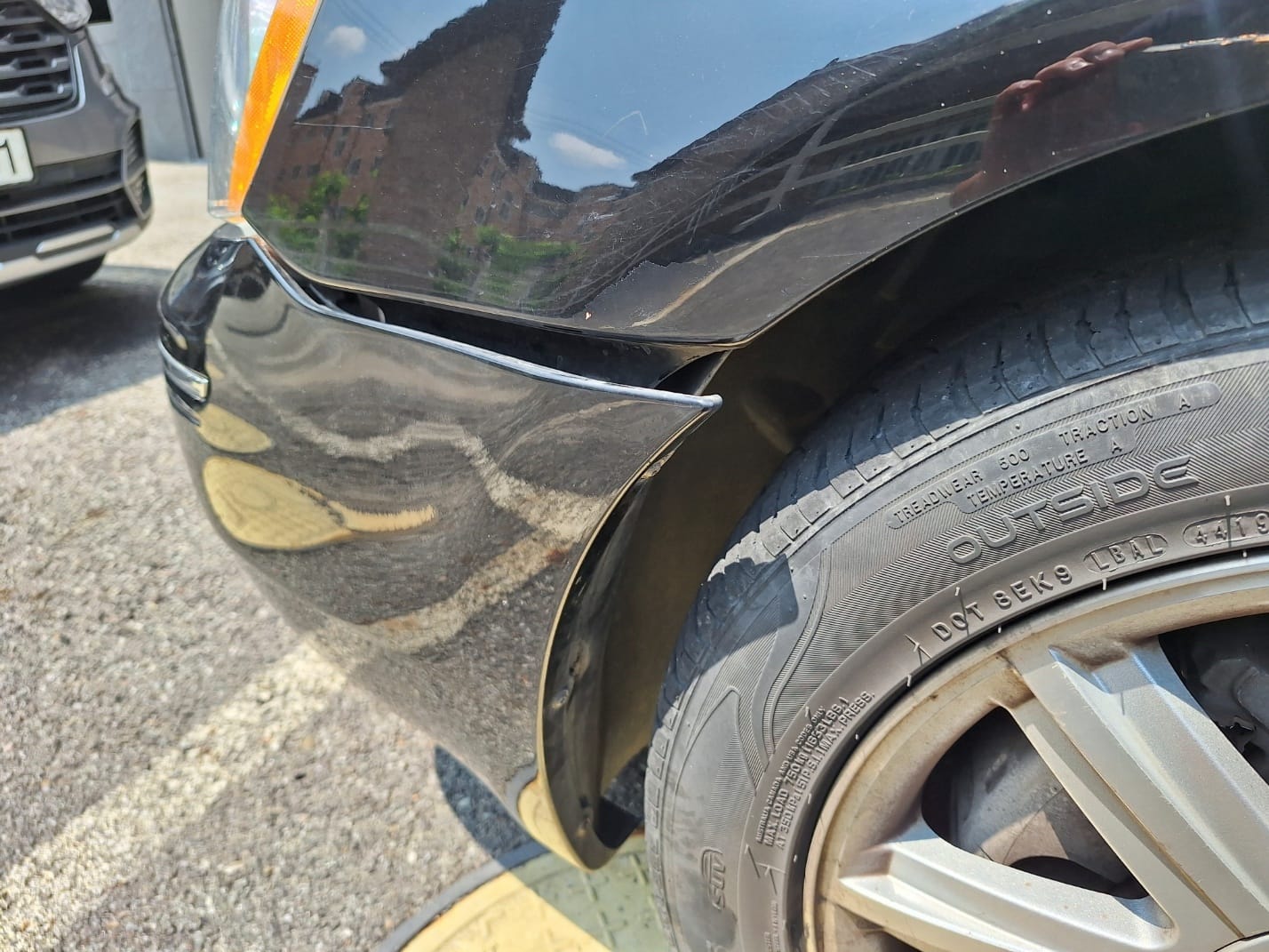 도로 경계석에 살짝 박으며 이탈된 범퍼를 카케어포유에서 단단하게 고정시켜드렸습니다.