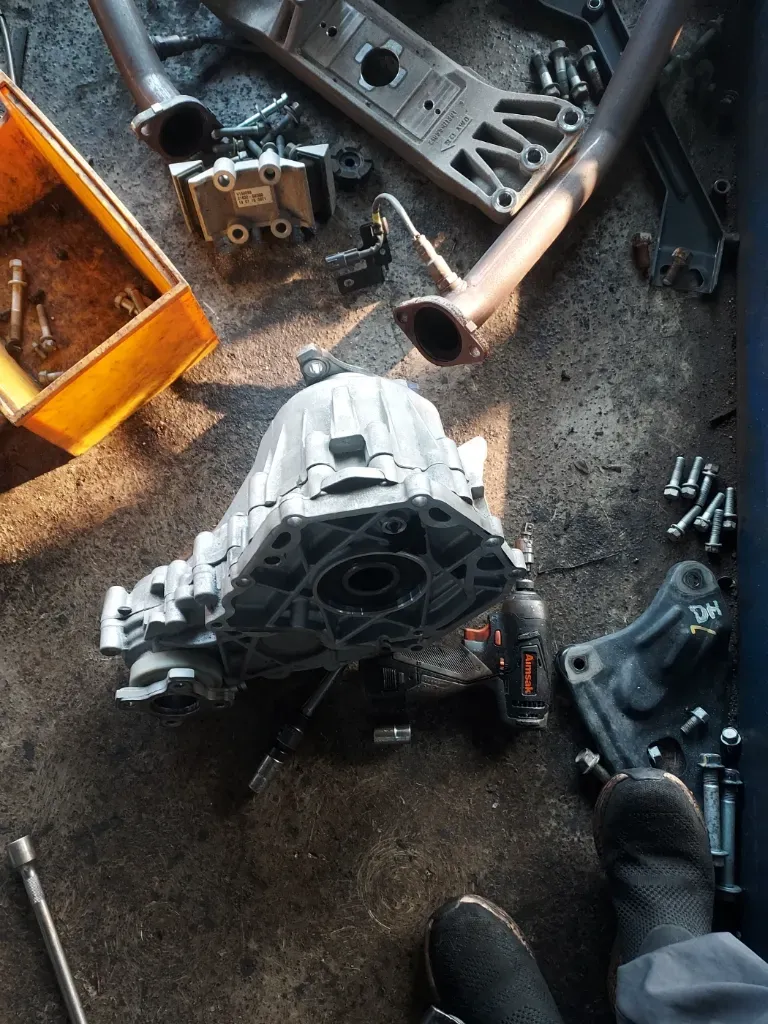 이번 작업은 시속 40km 구간에서 생기는 변속 충격 문제를 해결하기 위해 자동 변속기 전체를 탈거해 오버홀(overhaul) 수리 작업을 진행했습니다.