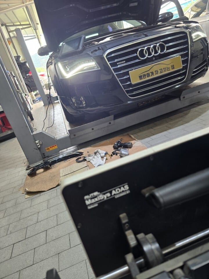 화순 병만이가차고치는집 아우디 A8 전방 레이더 센서 보정 작업