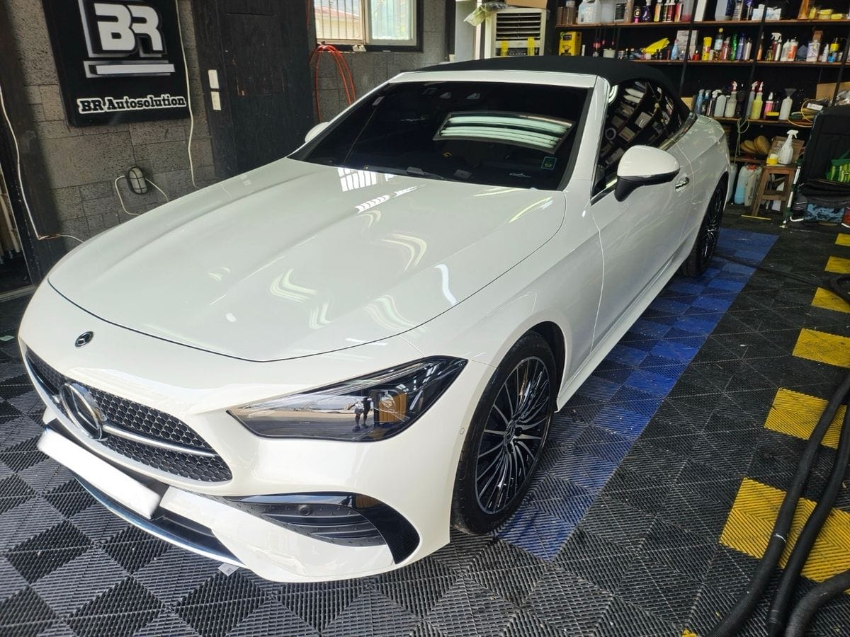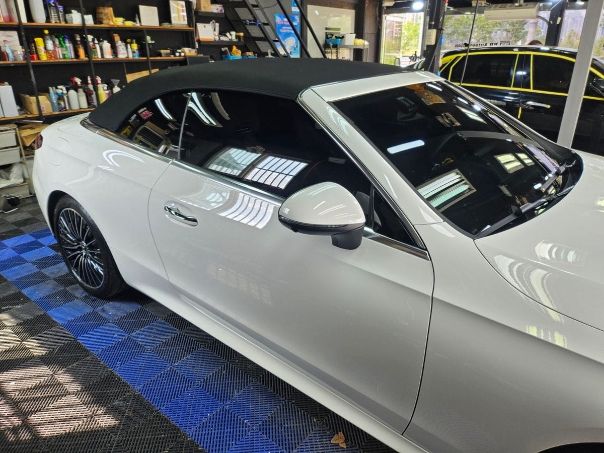 벤츠 CLE클래스 컨버터블의 유리막 코팅 작업을 진행했습니다.