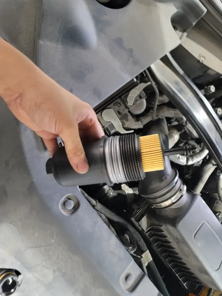 엔진오일 배출, 엔진오일 필터 교체, 엔진오일 주입의 절차를 거쳤습니다.