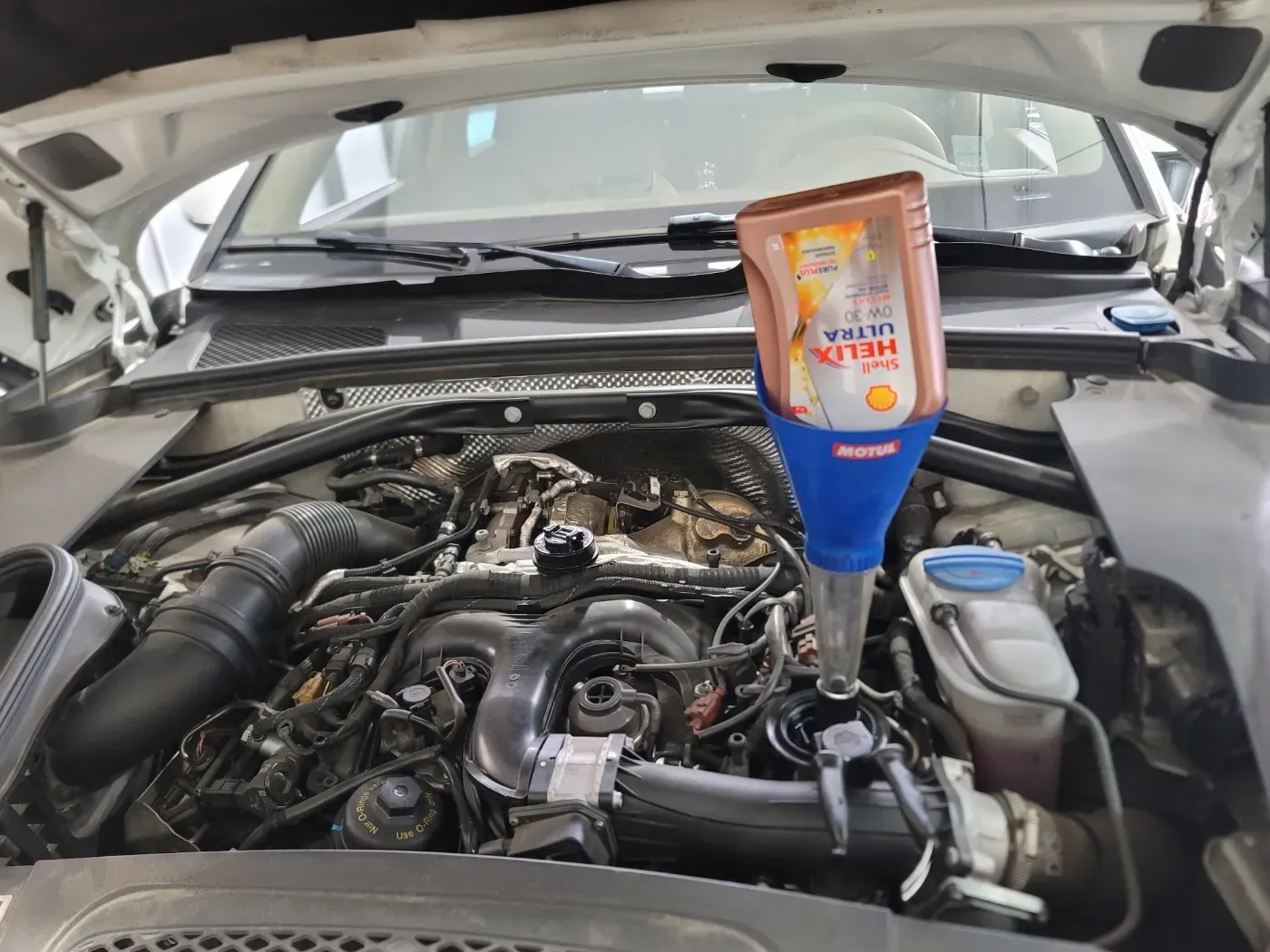 엔진오일을 잘 배출하고, 엔진오일 필터와 엔진 에어 필터를 교체한 후 새 엔진오일을 정량 주입해줍니다.