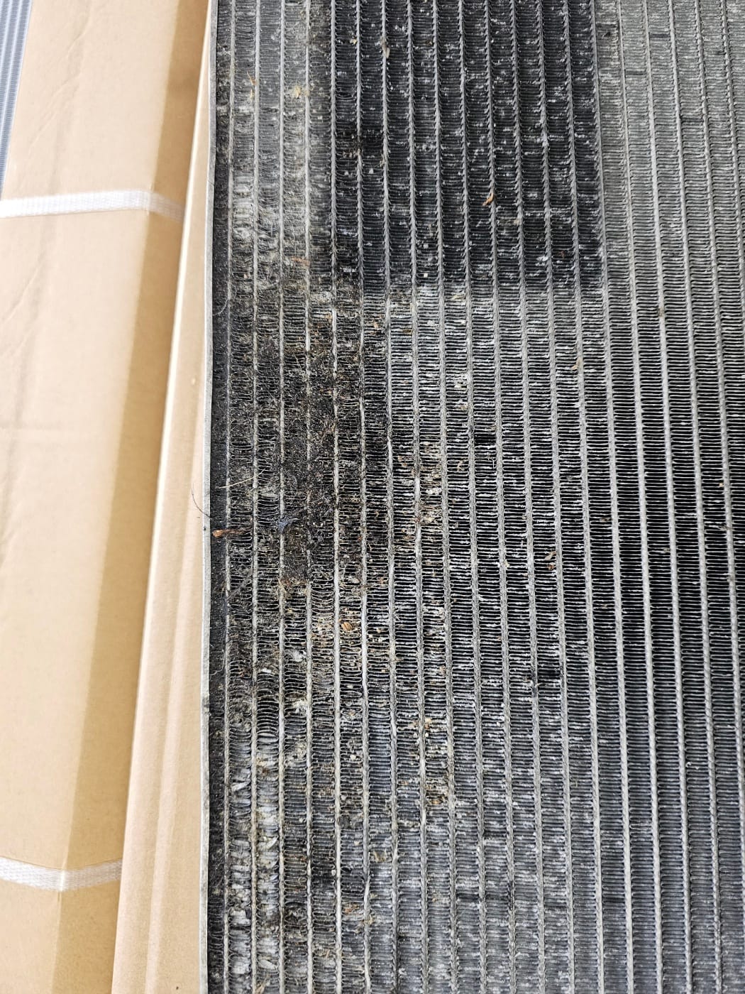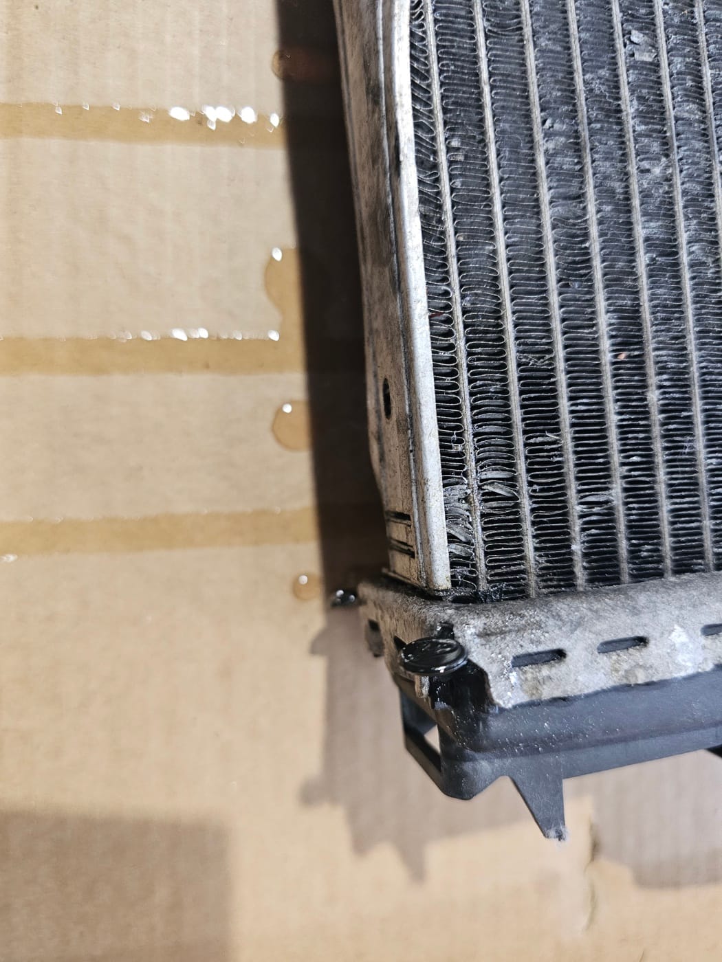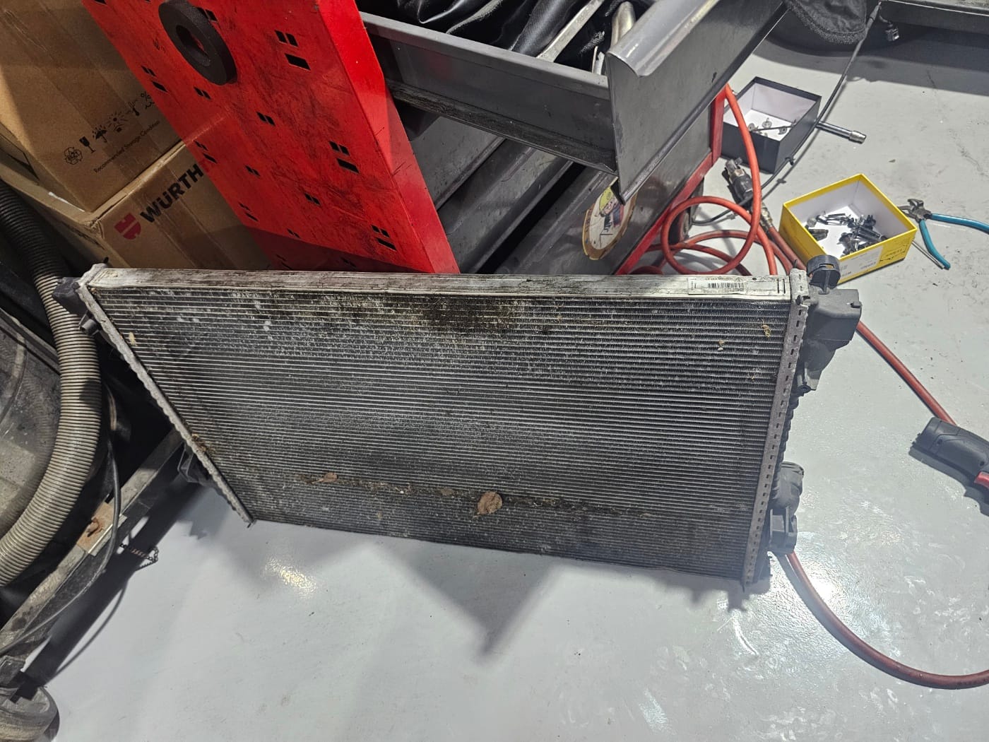 차체 전면 범퍼 등을 탈거한 후 엔진 냉각수 라디에이터의 파손을 확인하고 정확하게 수리했습니다.