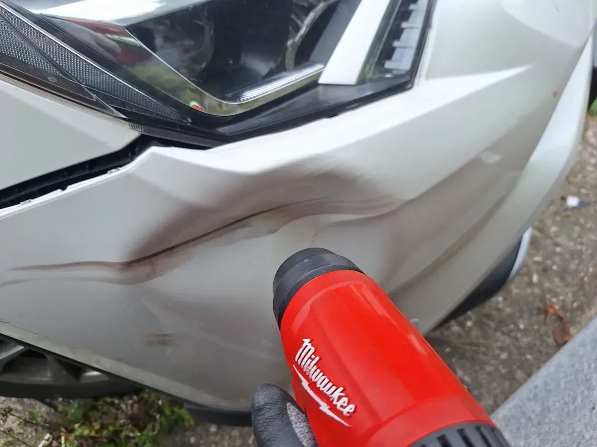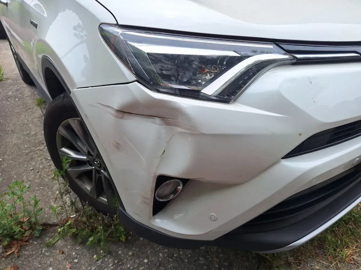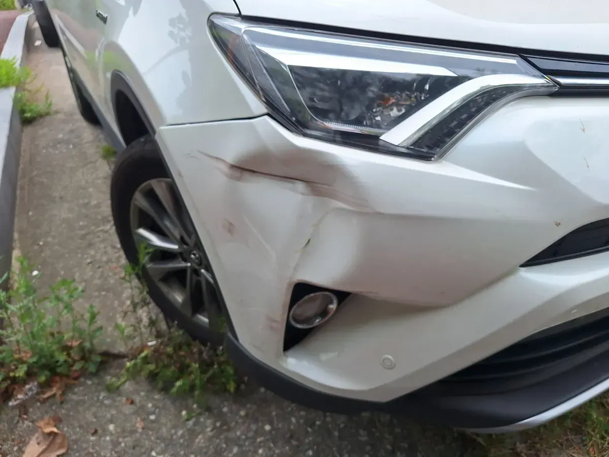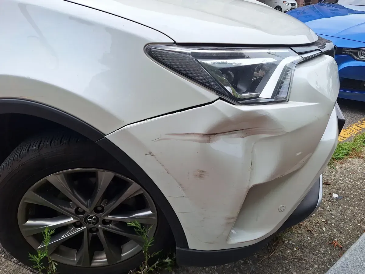 앞 범퍼에 큰 충격으로 범퍼가 움푹 들어가고 주변 부품까지 손상된 토요타 라브4 RAV4 모델을 출장 서비스로 수리해드렸습니다.