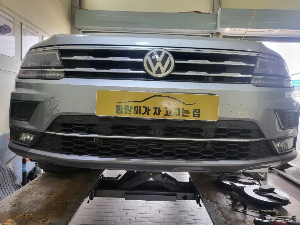 폭스바겐 티구안 브레이크 패드와 디스크 교체 작업 by 화순 병만이가차고치는집