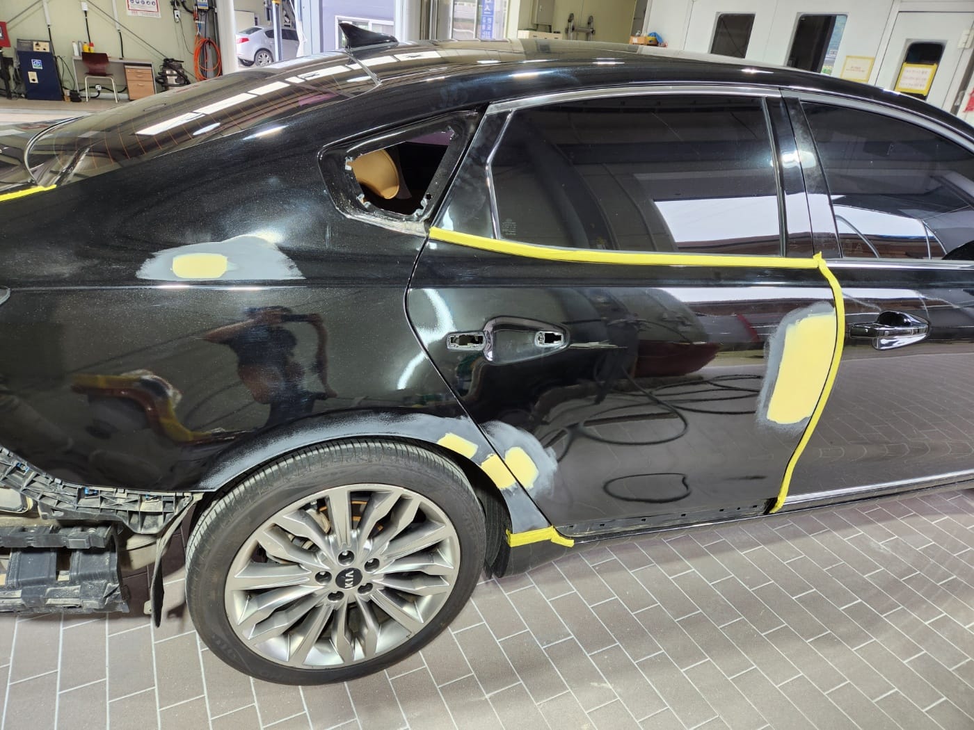 뒤쪽 작은 유리까지 꺠지는 사고였고, 부분부분 최선을 다해서 작업했습니다.